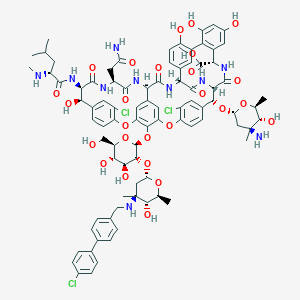 CN[C@H](CC(C)C)C(=O)N[C@@H]1[C@H](O)C2=CC=C(OC3=C(O[C@@H]4O[C@H](CO)[C@@H](O)[C@H](O)[C@H]4O[C@H]4C[C@](C)(NCC5=CC=C(C=C5)C5=CC=C(Cl)C=C5)[C@@H](O)[C@H](C)O4)C4=CC(=C3)[C@@H](NC(=O)[C@H](CC(N)=O)NC1=O)C(=O)N[C@@H]1C3=CC(=C(O)C=C3)C3=C(O)C=C(O)C=C3[C@H](NC(=O)[C@@H](NC1=O)[C@H](O[C@H]1C[C@](C)(N)[C@@H](O)[C@H](C)O1)C1=CC(Cl)=C(O4)C=C1)C(O)=O)C(Cl)=C2