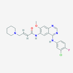COC1=C(NC(=O)\C=C\CN2CCCCC2)C=C2C(NC3=CC(Cl)=C(F)C=C3)=NC=NC2=C1