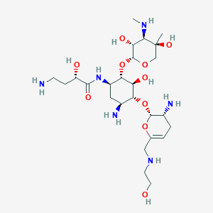 CN[C@@H]1[C@@H](O)[C@@H](O[C@H]2[C@@H](C[C@H](N)[C@@H](O[C@H]3OC(CNCCO)=CC[C@H]3N)[C@@H]2O)NC(=O)[C@@H](O)CCN)OC[C@]1(C)O