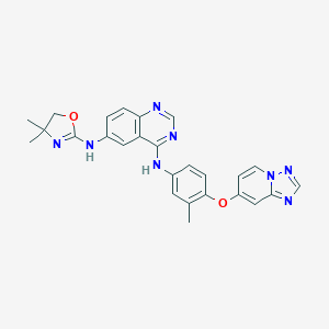 CC1=CC(NC2=NC=NC3=CC=C(NC4=NC(C)(C)CO4)C=C23)=CC=C1OC1=CC2=NC=NN2C=C1