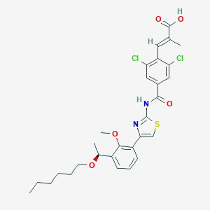 CCCCCCO[C@@H](C)C1=C(OC)C(=CC=C1)C1=CSC(NC(=O)C2=CC(Cl)=C(\C=C(/C)C(O)=O)C(Cl)=C2)=N1