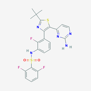 CC(C)(C)C1=NC(=C(S1)C1=NC(N)=NC=C1)C1=C(F)C(NS(=O)(=O)C2=C(F)C=CC=C2F)=CC=C1
