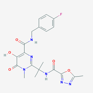 CC1=NN=C(O1)C(=O)NC(C)(C)C2=NC(=C(C(=O)N2C)O)C(=O)NCC3=CC=C(C=C3)F