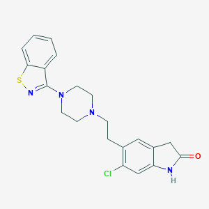 C1CN(CCN1CCC2=C(C=C3C(=C2)CC(=O)N3)Cl)C4=NSC5=CC=CC=C54